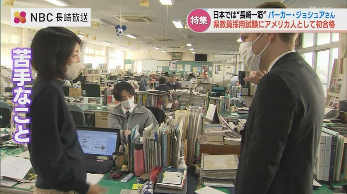 県では英語教育の充実を図ろうと、去年から臨時的任用教員の募集を外国人にも広げていて、パーカーさんは現在、その枠で採用されています。