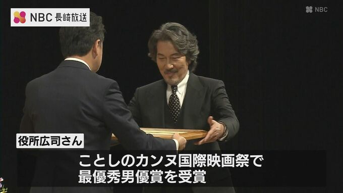 映画「パーフェクトデイス」での演技が高く評価され、2023年のフランス・カンヌ国際映画祭で最優秀男優賞を受賞したことを受けて、2日、大久保諫早市長から市民栄誉賞が贈られました。