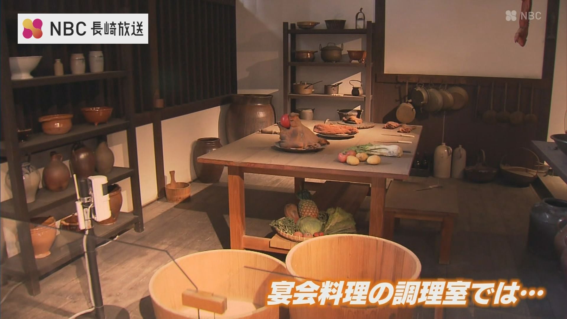 商館員たちの宴会料理の調理風景を再現した部屋では…