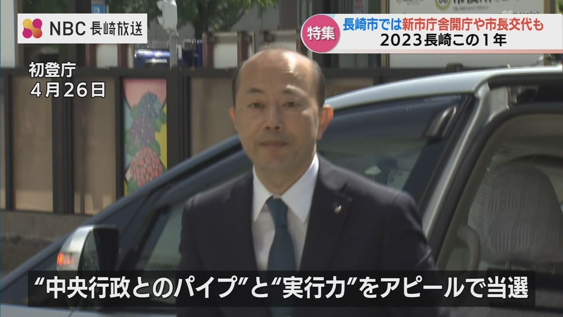就任からひと月半後の会見で、庁舎跡地の『文化施設整備』と松山町の『スポーツ施設再配置』の見直しを表明し、対話重視の姿勢を示しています。