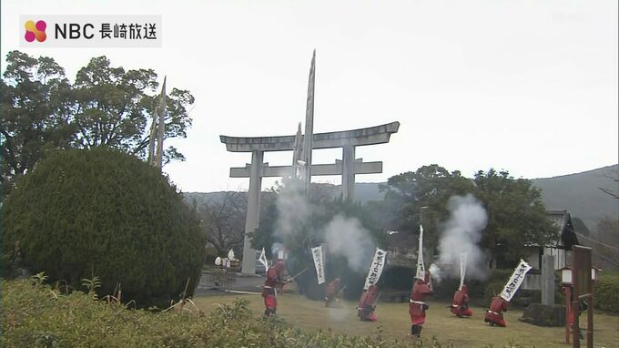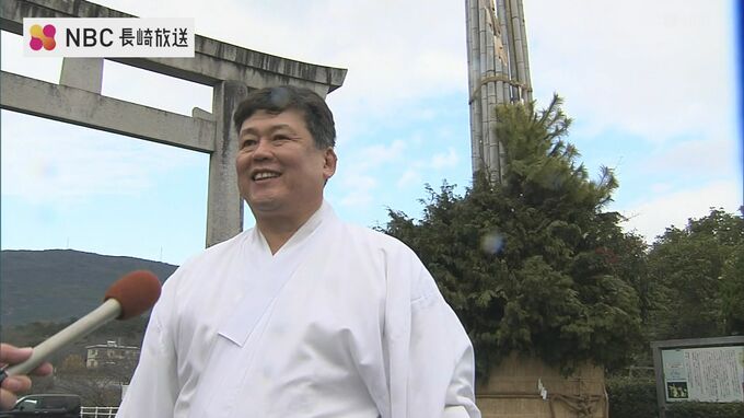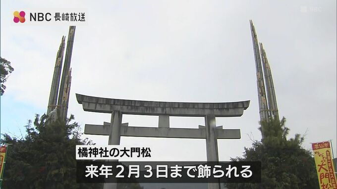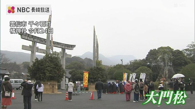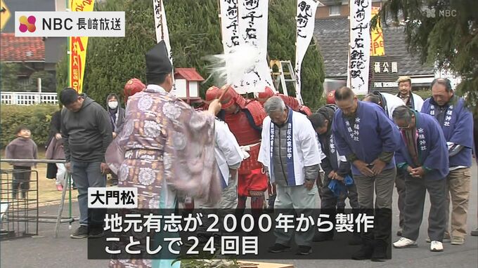 長崎県雲仙市千々石町の橘神社では、24日、高さおよそ13メートルの大門松が完成し、清祓いが行われました。