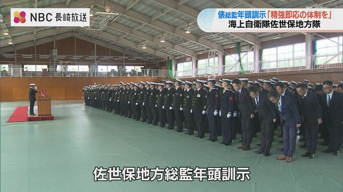 海上自衛隊佐世保地方隊のトップ俵千城総監が年頭の訓示を行い「精強・即応」体制の心構えを求めました。