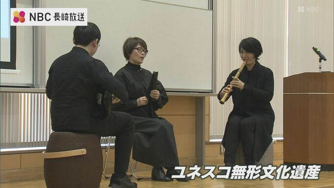 平安時代、日本に伝わった「古琴(こきん)」。一時は衰退していましたが長崎市興福寺ゆかりの僧侶が蘇らせたとされています。そして華僑の故郷・中国泉州が発祥の木管楽器「南音(なんいん)」。コンサートはユネスコ無形文化遺産に登録されている2つの音楽の魅力を知ってもらおうと長崎大学が、中国からプロの演奏家を招いて開き、6曲が披露されました。やわらかく素朴な音色を奏でる「南音」と「古琴」のコンサートは、2月も長崎市内4か所で行われる予定です。
