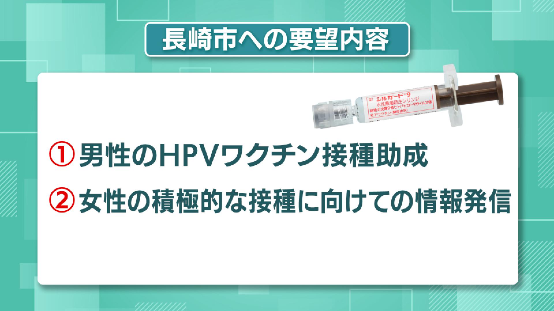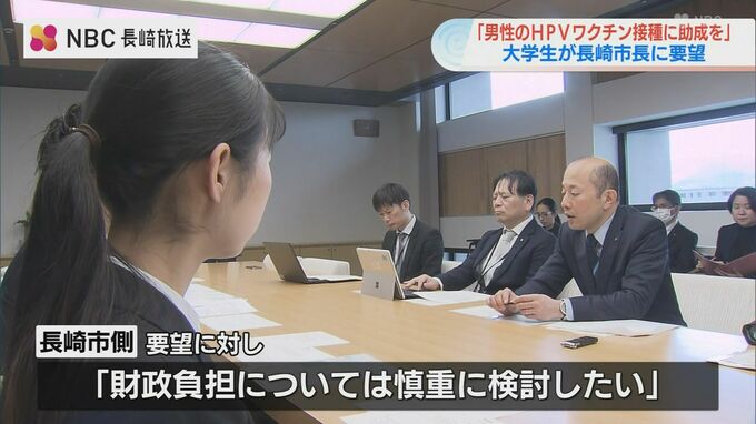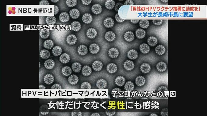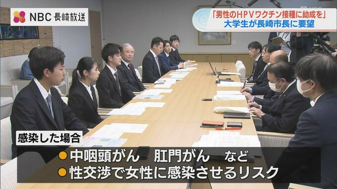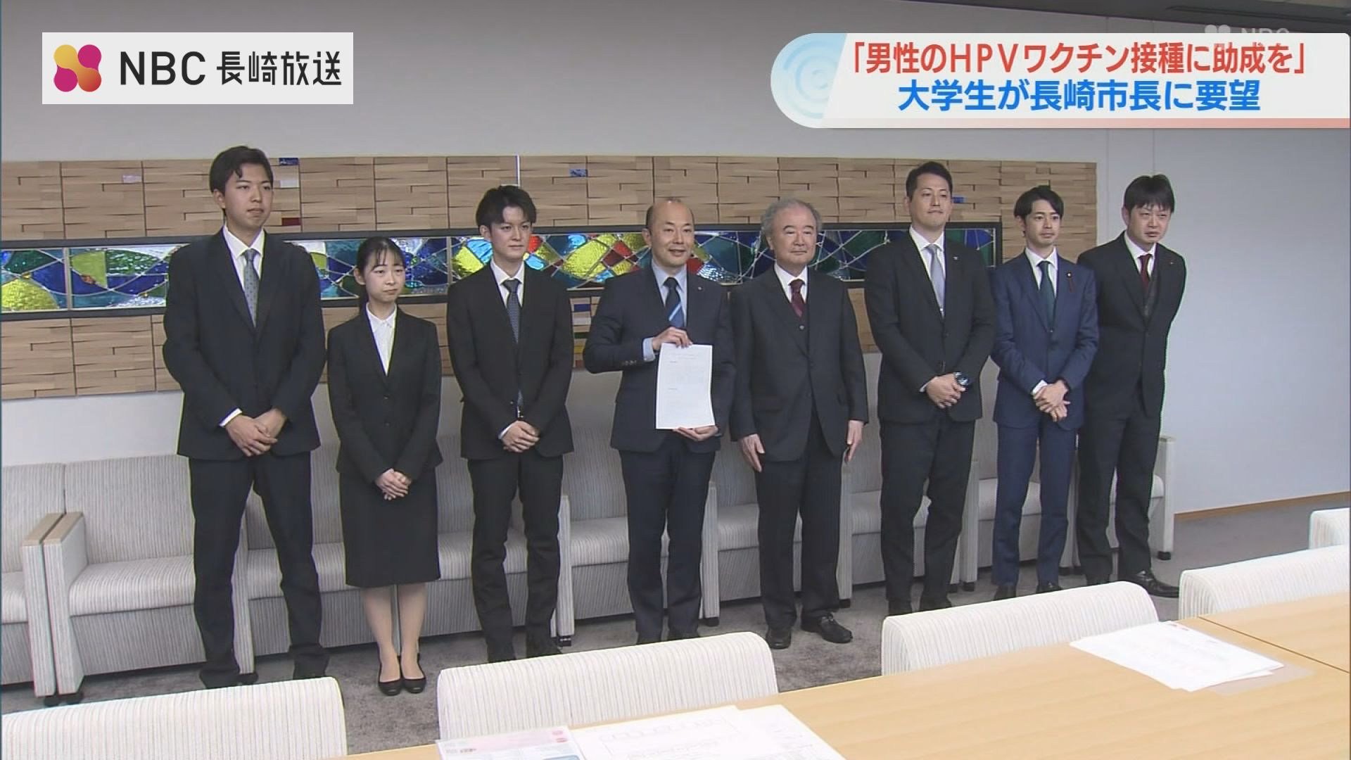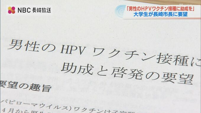子宮頸がんなどを予防するHPVワクチンを巡り、現在、全額自己負担となっている男性への接種を促そうと、29日、長崎市の大学生が鈴木長崎市長に助成を求める要望書を提出しました。