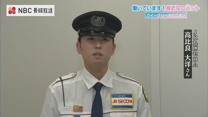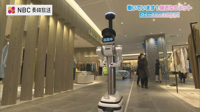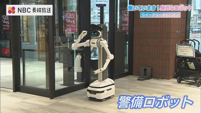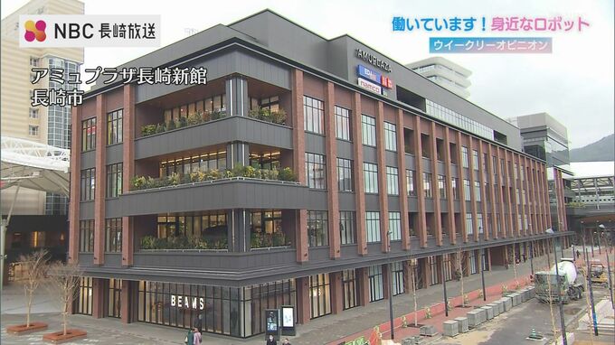 JR長崎駅に隣接するアミュプラザ長崎新館。入り口では警備ロボットが目を光らせています。