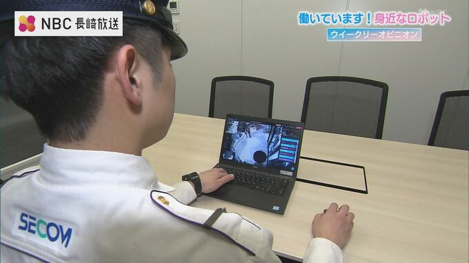 警備ロボットには胸と頭上、背中に3つのカメラがあり、別室の警備員が、映像をチェックしています。