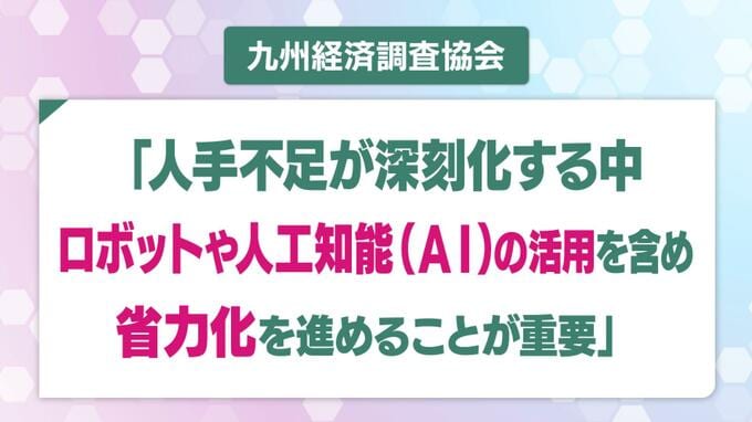 九州経済調査協会は「人手不足が深刻化する中、ロボットや人工知能(AI)の活用を含め、省力化を進めることが重要」と指摘しています。