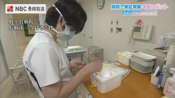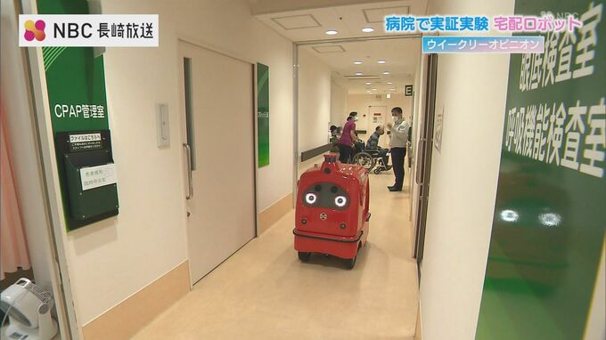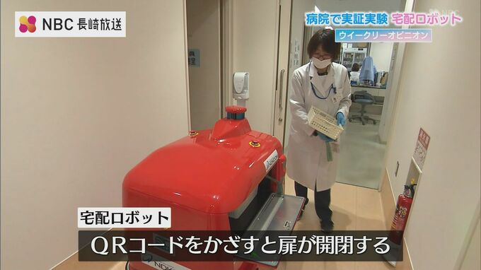 今月、長崎市の虹が丘病院で、採血した血液を臨床検査技師に渡す実証実験が行われました。1日に採血室と検査室の間を《約30往復》する技師や看護師の負担を少しでも減らそうと、時速3キロで血液を運びます。