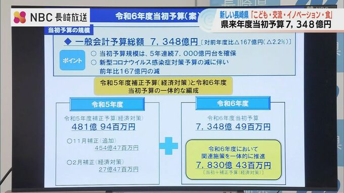 長崎県の来年度の一般会計当初予算案は7348億円で5年連続で7000億円台となりました。