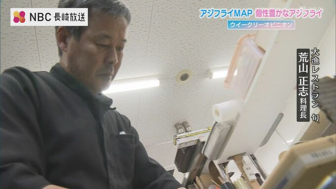 松浦市に店を構えておよそ30年になる「あじ彩」では、アジの旨味を最大限に引き出すため、パン粉にあるものを加えています。
