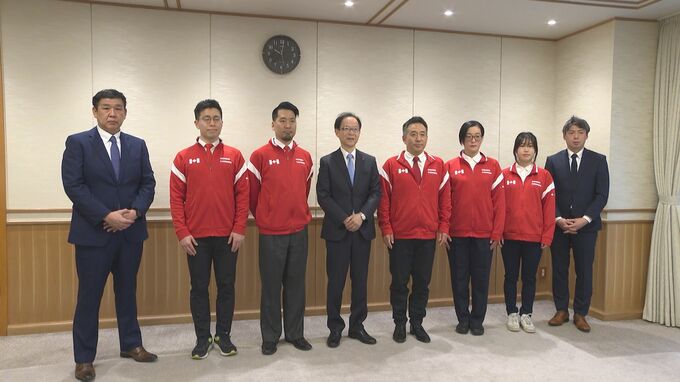 県庁を訪れたのは、剣道カナダ代表の荒将博監督や男子と女子の主将ら5人です。荒監督は別府大学・明豊高校剣道部の岩本貴光総監督と親交があり、17日から別府大学で強化合宿を開始しています。カナダ代表は今年7月にイタリアで開催される世界剣道選手権大会に出場し、男女団体の同時入賞を目指しています。