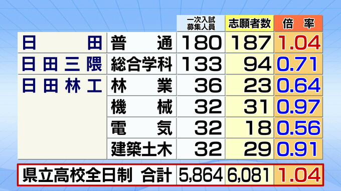 大分県立高校一次入試2024志願倍率 上野丘1.41倍、舞鶴1.12倍、大分西1.63倍 定員割れ全日制で20校【全校・全学科の出願倍率一覧掲載】