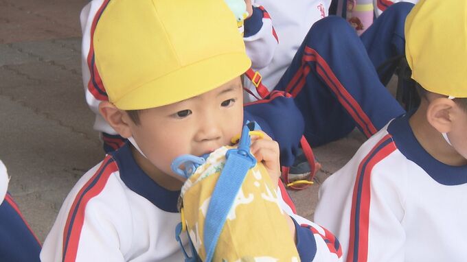 (明野第一幼稚園・後藤淑子主任)「水分補給は今でしたら10~15分に1回。もっと暑くなるとそれ以上に声かけをしています。飲まないお子さんは、飲むことをしないので、私たちも帰りの時に1人ずつ水筒の中を振って確認しています」