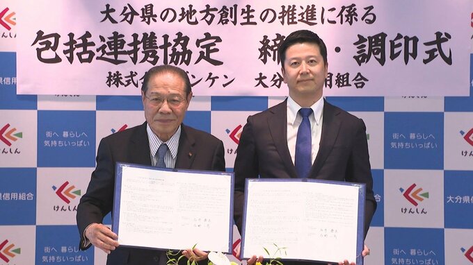 脱炭素社会を目指して 「デンケン」と「県信用組合」が包括連携協定を締結 大分 2024年4月17日(水) 14:19 国内 太陽光発電事業などを行う、大分県由布市のデンケンが、脱炭素社会と地域の製造業活性化に向けて、県信用組合と連携協定を結びました。県信用組合の本店で行われた調印式には吉野一彦理事長や、デンケンの石井源太…
