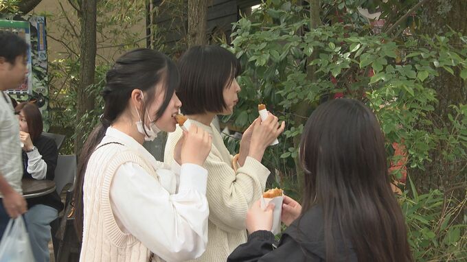 一方、県内屈指の観光地となっている由布市湯布院町の湯の坪街道。午前中から多くの観光客が訪れていて、名物料理やスイーツの食べ歩きを楽しむ姿がみられました。