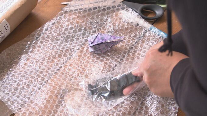 この日、別府市にあるホテル「アマネリゾート」から香港の観光客が忘れたワイヤレスイヤホンを受け取りました。梱包される忘れ物にはおもてなしの心を込めた折り鶴が添えられます。