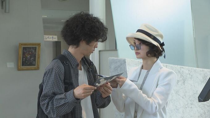 豊後大野市で始まった短編映画の撮影。主演の俳優、佐野弘樹さんと剛力彩芽さんの演技を静かに見つめるのは、NHK連続テレビ小説「ブギウギ」の脚本を手がけた足立紳監督です。