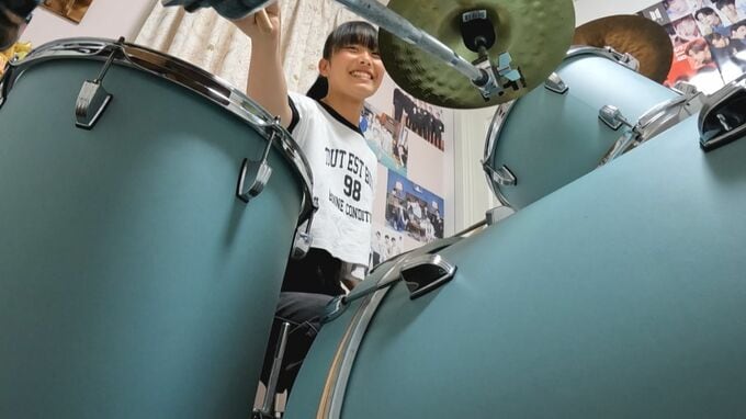大人顔負けのパフォーマンスを披露してくれたのは、大分県日出町に住む中学1年生の日高樹里さん(12)。学校から帰宅したあと毎日一時間、ドラムの練習に励んでいます。