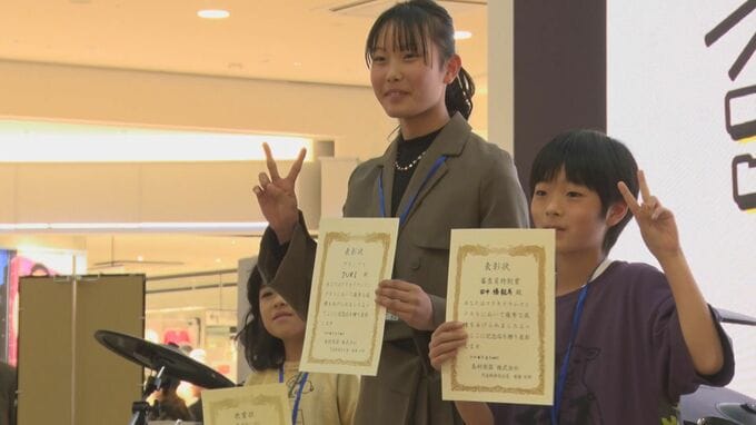 お手本にしたのはYouTubeなどの動画。ほぼ独学で学び着実に技術を身につけ、今年の3月に行われた「コドモドラムコンテスト九州・沖縄地区大会」に初出場しました。予選を勝ち抜いた14人が腕前を競いあい、樹里さんは見事グランプリに輝きました。