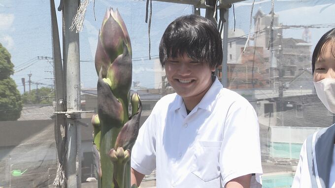 幻の花「リュウゼツラン」 数十年に1度、大分舞鶴高校でまもなく開花 2024年6月4日(火) 17:46 国内 大分市にある大分舞鶴高校で、数十年に1度咲くと言われる南米原産の花「リュウゼツラン」がつぼみを膨らませ、生徒たちが開花の時を待っています。(吉田アナ)「学校のグランドのすぐ横に、ネットで囲われた「リ…