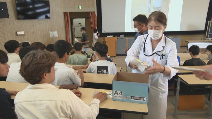 医学部では飲酒可能年齢に達していない医学科の1年生のうち、希望者を対象にアルコール体質を調べる遺伝子検査が実施されました。およそ50人が参加した検査では口の中の粘膜を採取。検体は検査機関に送られ、アルコールを分解する力や頭痛や吐き気の出やすさなどから5つのタイプに分類されます。