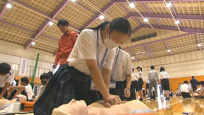 (生徒)「手で胸を押し込むときの深さが5センチというのを知れたので、もしもそういう時があったらしっかり自分で実践したいと思いました」「町に出たときに人が倒れていたら、助けられたら良いなって思います」