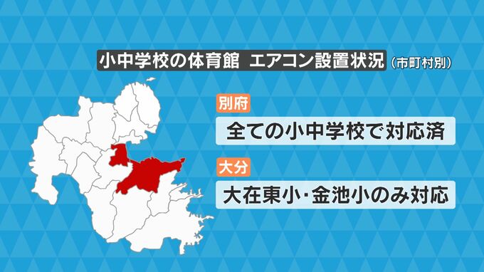 教育現場の熱中症対策として、大分県内の小中学校では全ての教室にエアコンが設置されていますが、体育館の整備は進んでいません。
