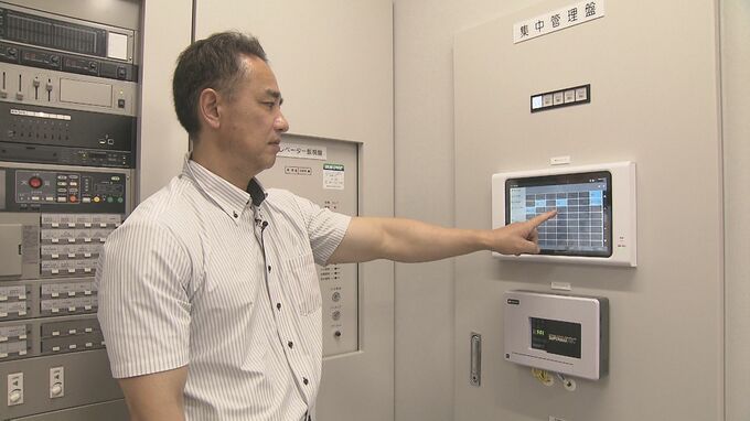 大在東小の体育館では、体育の授業や全校集会などで児童の熱中症を防ぐため、学校では6月中旬からエアコンの運用を開始。空調管理は職員室で行います。