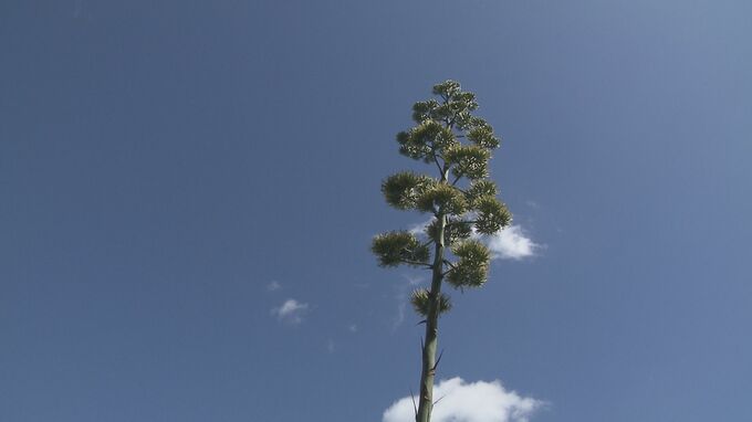 薄黄色の花を咲かせる南米原産のリュウゼツラン。数十年に1度開花して一生を終えるとされていて、全国各地で花が咲き始めています。
