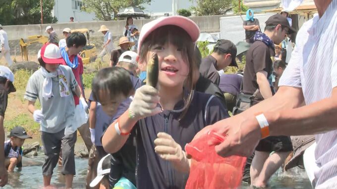 故郷の川に親しんでもらおうと、大分県国東市で「川遊びフェスティバル」が開かれ、子どもたちがアユのつかみ捕りに挑戦しました。