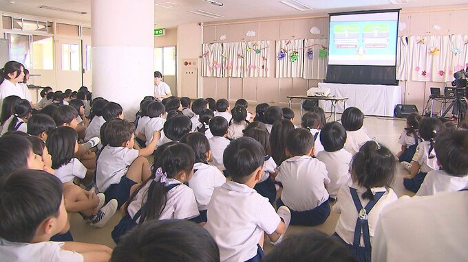 横断歩道の渡り方などを楽しみながら学ぶ、交通安全のアニメ動画が完成し大分市の幼稚園で披露されました。