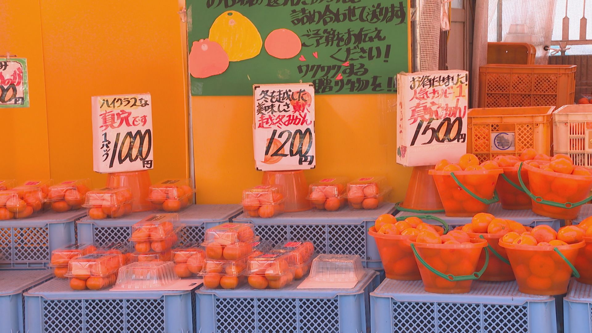 旬を迎え、大分産に愛媛産と様々な品種が並ぶ直売所では、入荷量の減少で価格に変化がみられます。