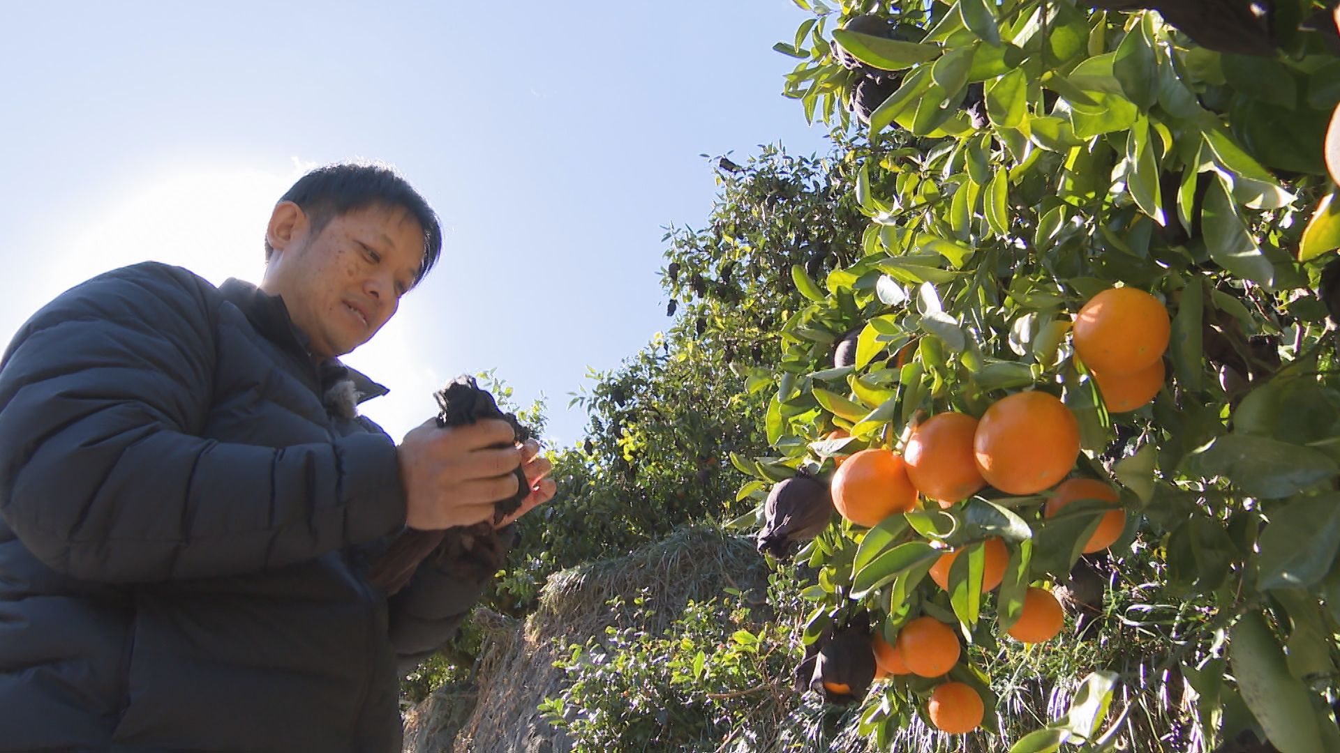 県内有数の産地、津久見市の農家ではこれから収穫期を迎えるサンクィーンの袋掛けを行っています。今シーズンは「裏年」で、元々量が少ない上に夏の高温や秋の長雨など天候不順が重なり、全体的に量が少ないということです。