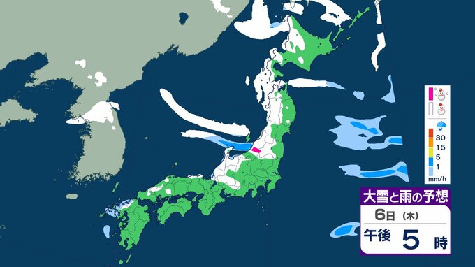 【大雪情報】山口、福岡、佐賀、長崎、大分、熊本の各地で積雪 6日昼前にかけて大雪のおそれ 平地で降雪量7~20センチ予想 警報級の可能性【雪のシミュレーション】