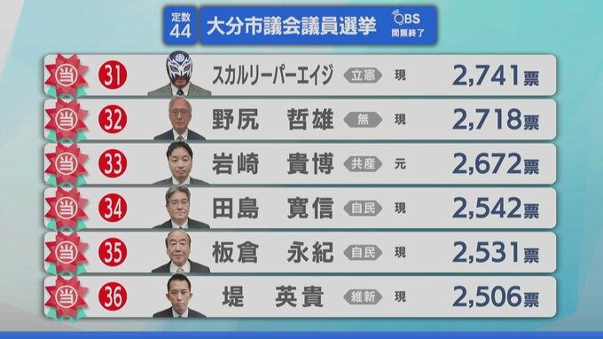 【開票速報】大分市議会議員選挙2025 定数44に54人が立候補 現職34人、元職2人、新人18人の争い 激戦の行方は?