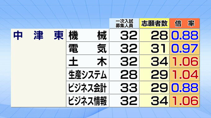 宇佐、宇佐産業科学、安心院、高田、国東の志願倍率