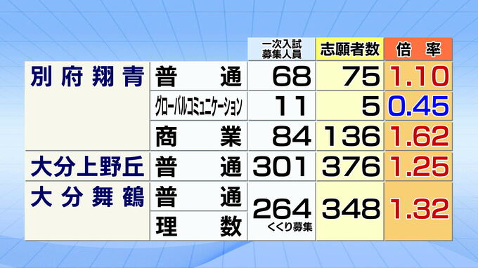 大分雄城台、大分南、大分豊府、大分工業の志願倍率
