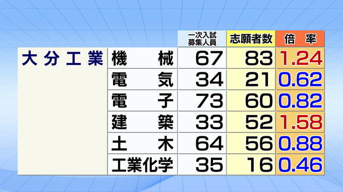 大分商業、芸術緑丘、大分西、大分鶴崎、鶴崎工業の志願倍率