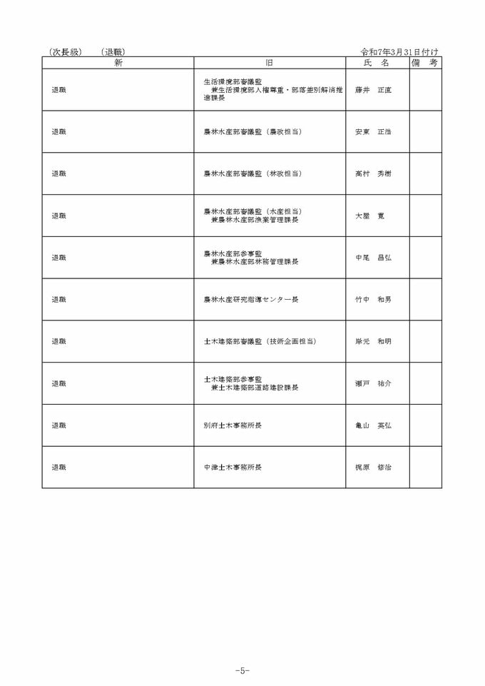 大分県職員人事異動2025【特別職、部長級、次長級、課長級の名簿一覧掲載】