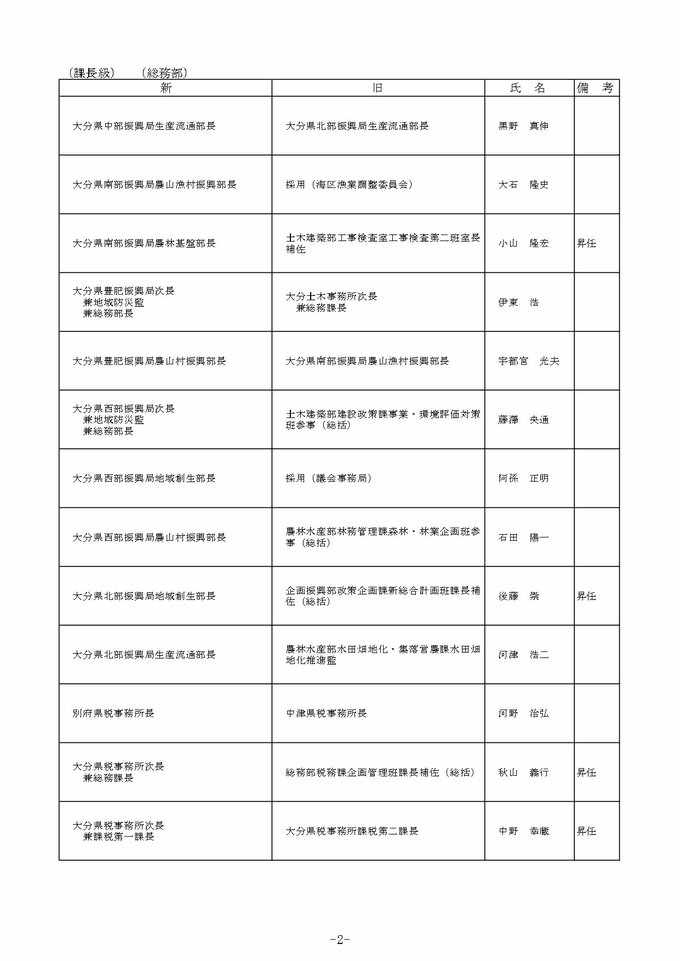 大分県職員人事異動2025【特別職、部長級、次長級、課長級の名簿一覧掲載】