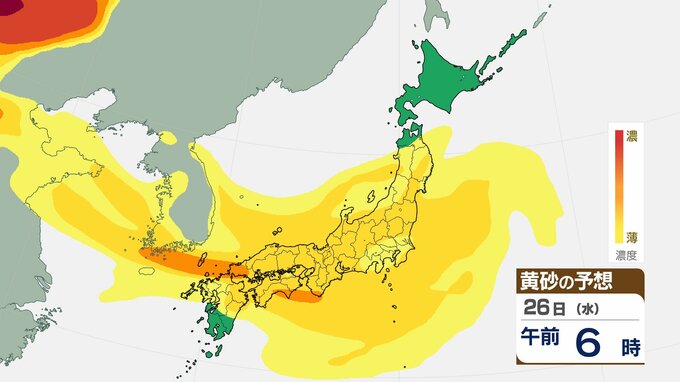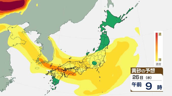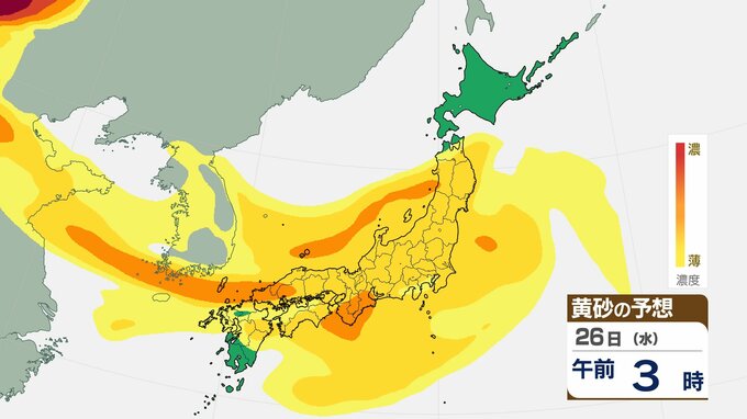 【黄砂情報】九州から関東、東北にかけて25日は黄砂飛来のおそれ 交通障害に注意【黄砂予想シミュレーション】