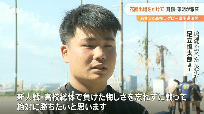 去年は14対14と、史上初の両校優勝というドラマを見せた2校が今年も順当に決勝に進出。2年連続の花園出場をねらう舞鶴は今年もフォワードを主体に粘り強く守るスタイル。中でもキャプテンの田代選手は恵まれた体格と熱い闘志でチームをけん引します。