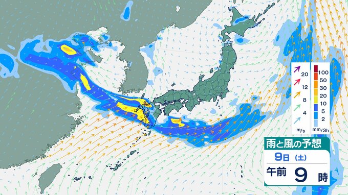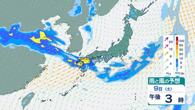 週末は九州中心に警報級大雨 福岡、長崎で最大200ミリ予想 全国的に大気不安定な状態続く 土砂災害などに警戒【9日~11日の雨風予想シミュレーション】