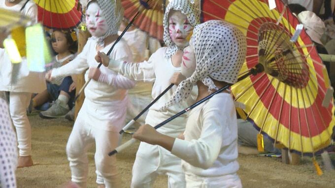 大分県姫島村伝統の盆踊りが14日夜行われ、今年も子どもたちがユーモラスな“キツネ踊り”を披露しました。