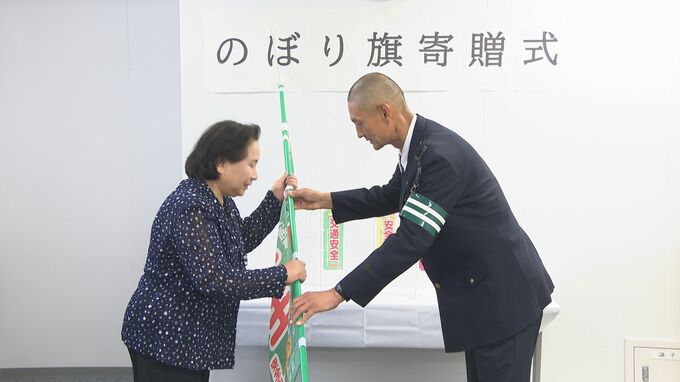 交通事故で子どもを亡くした交通指導員の男性が、交通安全を願うのぼり旗を26日大分県別府市に寄贈しました。