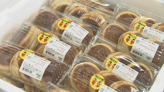 このご当地スイーツの評判は口コミで広がり、土日には整理券が配布され、開店と同時に完売する程の人気ぶりです。価格は1パック3個入りで810円。6日も朝早くから買い求める人の姿が見られました。
