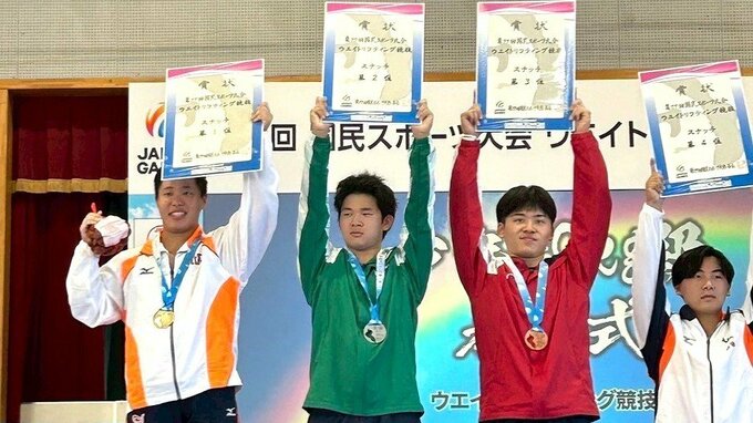 ウエイトリフティング、男子89キロ級でインターハイ2位の宇佐・三宮叶夢選手は、スナッチは126キロで優勝、ジャークで156キロで2位となりました。