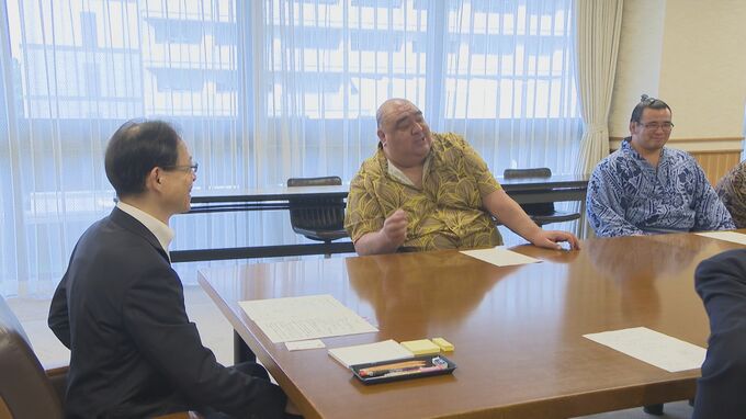 武蔵川部屋は11月9日から福岡市で開催される大相撲九州場所に向けて、15日から別府市で合宿を始めました。別府市での合宿は今回で7回目となり、佐藤知事は「温泉で疲れを癒しておいしいものを食べて活躍を期待しています」とエールを送りました。