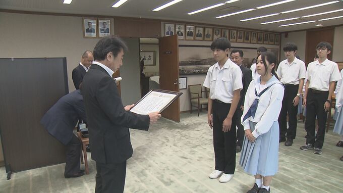 日本一となった栄誉を称えて、大分市役所で化学部に市長表彰が贈られました。