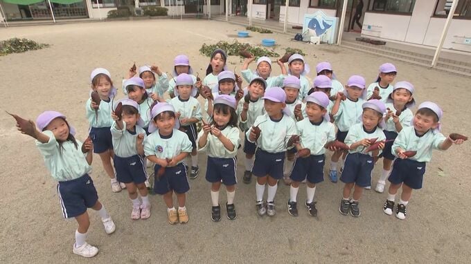 別府市の明星幼稚園では食育の一環として農業体験を行っています。年少から年長まで園児114人が幼稚園の園庭で芋掘りに挑戦しました。